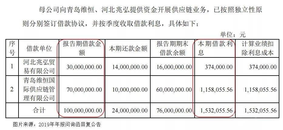 并且汇金股份向青岛维恒、河北兆弘提供资金开展供应链业务,虽然签订了借款协议,但利率不到2%。