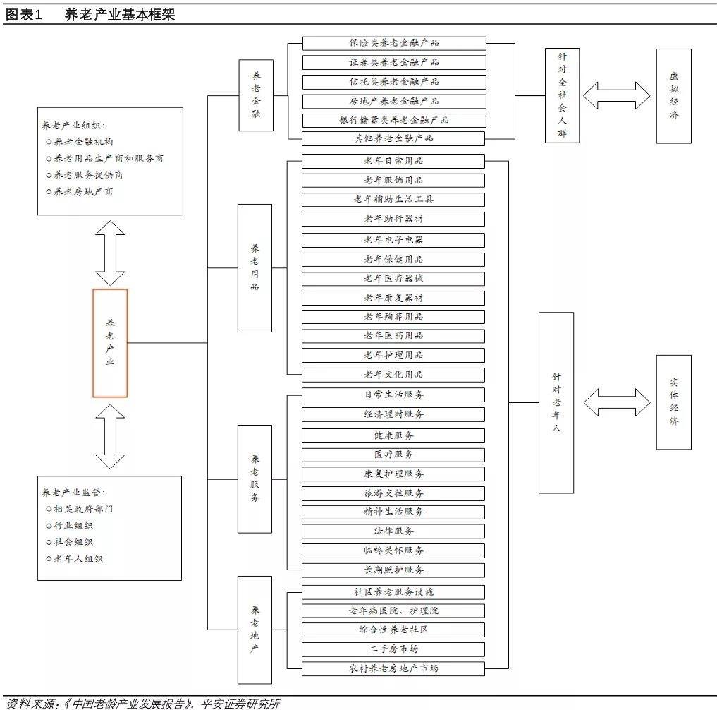 具体来看,养老产业包括养老金融业、养老房地产业、养老用品业和养老服务业四个部分。