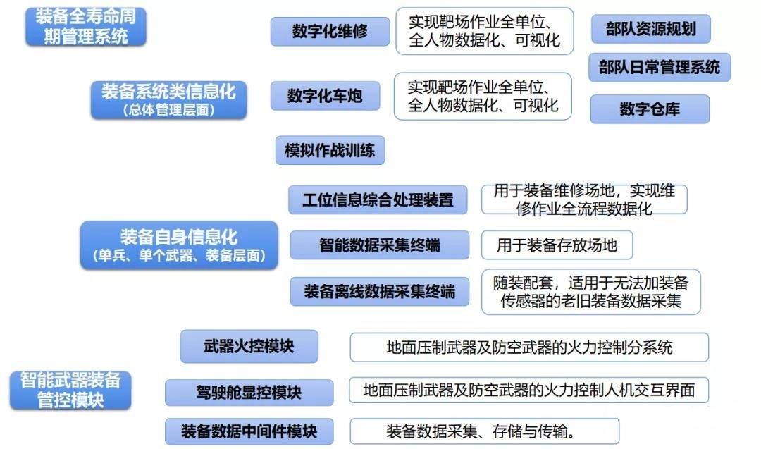 美国陆军的信息化装备程度已达到 50%以上,美国海军、空军的信息化装备程度已达到 70%以上,我国国防信息化建设已经全面启动,正处于由“基本实现机械化、信息化建设取得重大进展”转向 “基本实现建设信息化军队”关键时期。国防信息化细分市场由基础产品、终端产品、解决方案构成,其中末端市场竞争较为激烈,市场化程度高,但是能提供整体解决方案,尤其是结合需求、构建全自主可控产品技术体系的企业为数不多。