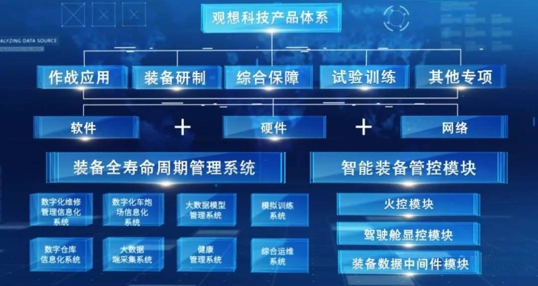 观想科技名字来由就是——观你所需,想你所求,公司致力于为军队、军工集团及科研院所等国防单位“研、供、管、训、修”全生命周期信息化提供整体解决方案,将军方所需武器、装备与人员集成于协同工作的系统,实现对作战应用、装备研制、综合保障、试验训练等核心业务的上下贯通、全域可控,广泛应用于火箭军、陆军、空军、海军等国防信息化升级、管理、训练、维修保障领域。