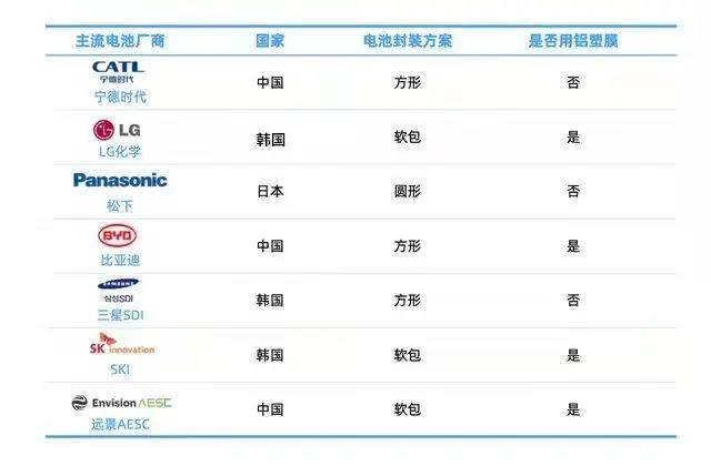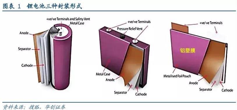 相比前面两个,软包电池属于更新的技术路线,技术成熟性比较低,而且研发壁垒较高,封装材料是铝塑膜。