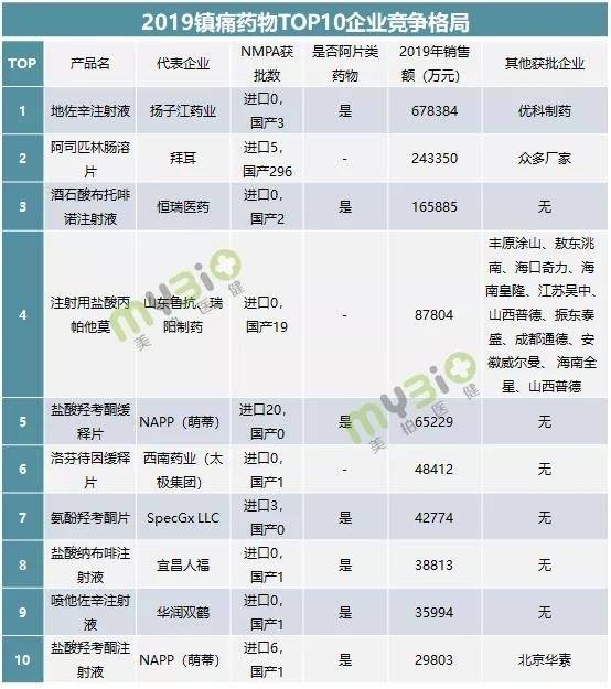 其中,第一名的地佐辛以67亿年销售额遥遥领先,紧接着便是阿司匹林和布托啡诺。