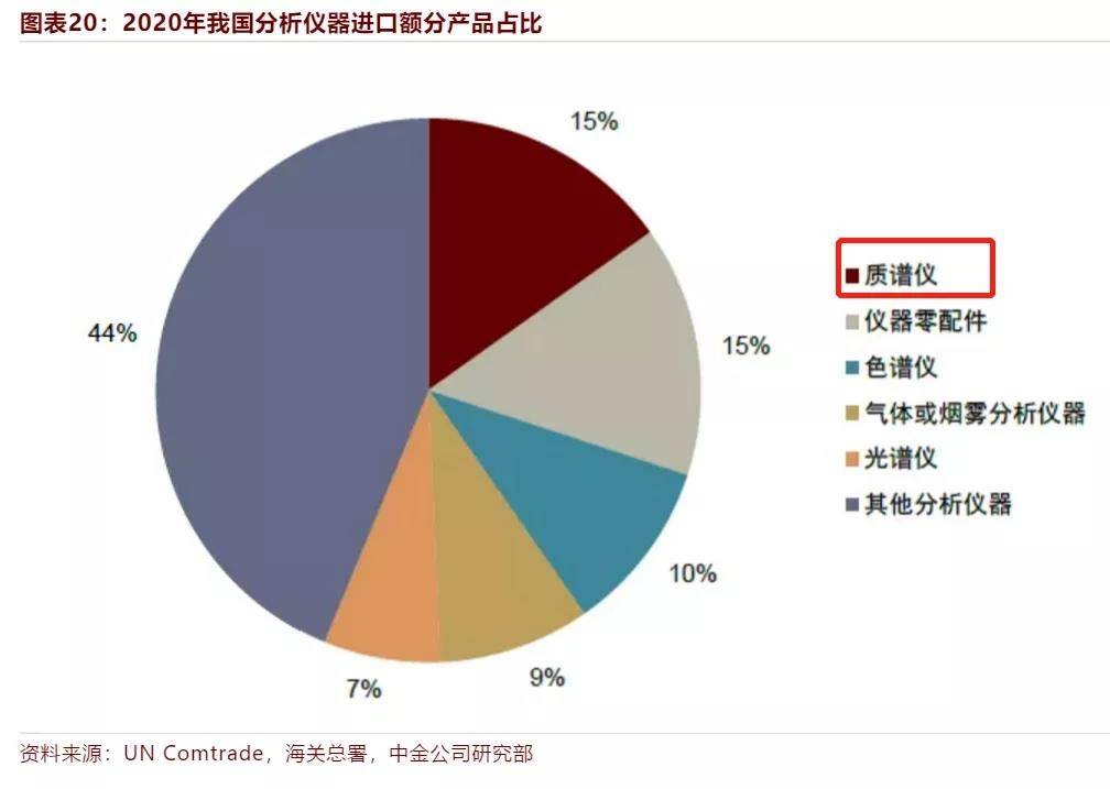 高端科学分析仪器行业同样也不例外,分析仪器是我国长期处于贸易逆差状态的市场,长期被安捷伦、赛默飞世尔、岛津等海外品牌占据,以质谱仪、色谱仪为例,2020年长期大型中高端科研仪器中国产品牌仪器数量占比不足3%,扶持国产势力迫在眉睫。