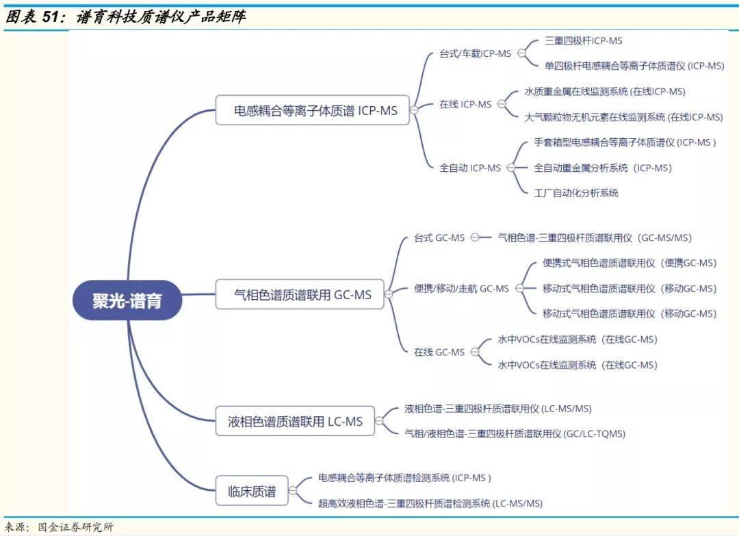 聚光科技2015年成立谱育科技,专注于质谱技术和产品的研发,目前公司已拥有较完整的质谱、色谱、光谱、理化等分析检测技术及气体、液体、固体等进样前处理技术。