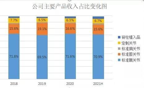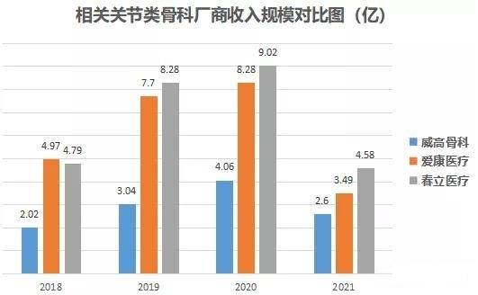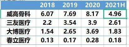关节类产品为春立医疗的第一大收入来源,收入占比超九成,而相比之下爱康医疗关节类产品也是其主打产品,收入占比达八成左右,威高骨科近年来开始逐步在关节类产品发力,其收入占比已从2018年的16.7%逐年提升至2021年上半年的23.7%。