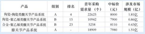 脊柱类产品刚刚起步,市场份额还较小,在2021年国家带量采购中髋关节产品中标,且降价幅度较为温和,但膝关节产品丢标