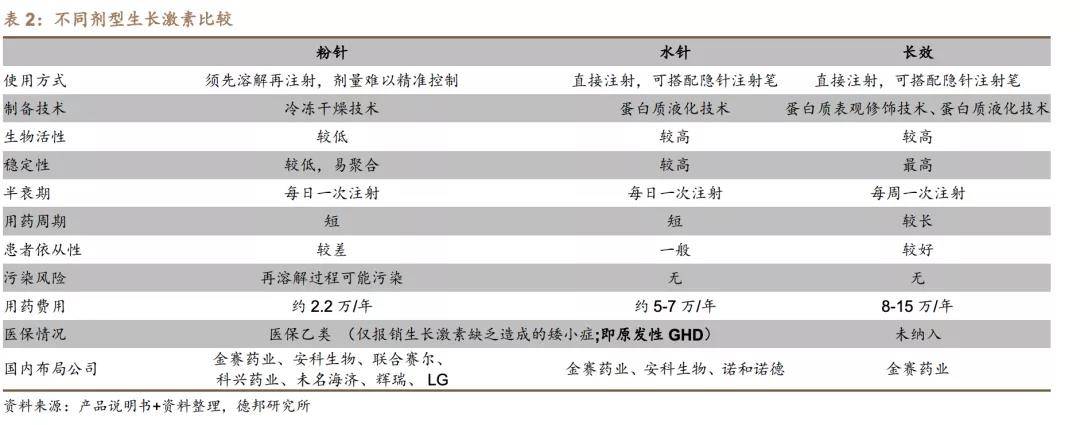 在解释“超预期”之前,我们先对生长激素进行一个科普,生长激素一共分为三种剂型:粉针、水针、长效,越往后,效果越好,同样的,价格也更贵。