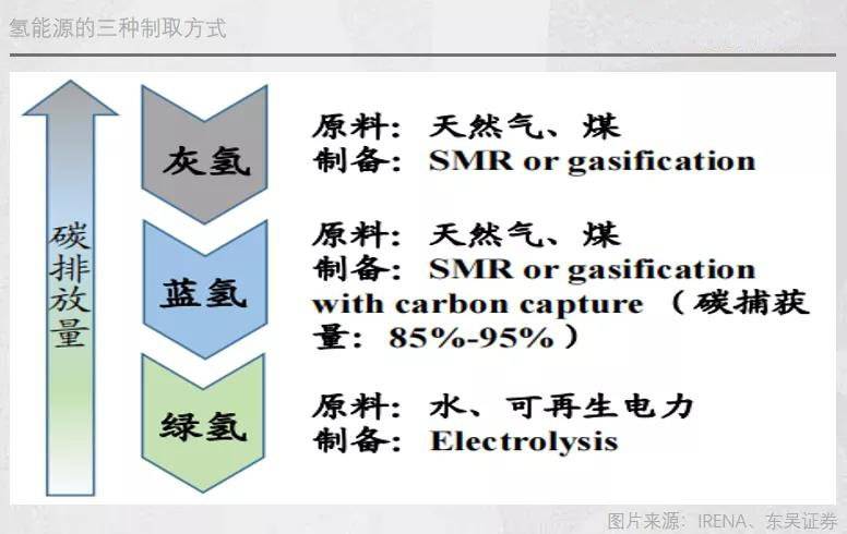 现阶段,氢能源共有三种制取方式,按照碳排放量划分,分别为“灰氢”、“蓝氢”和“绿氢”。