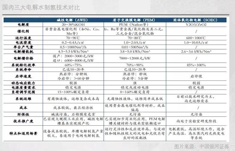 不同于碱性电解水的高耗电量,PEM和SOE的能耗标准明显更低。但由于SOE距离产业化还很远,因此PEM已经成为“绿氢”迭代的主要方向。