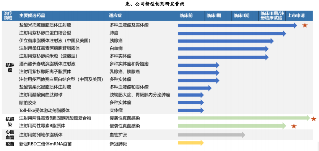 例如公司新上市的多恩达,其正是通过脂质体(一种纳米颗粒)对米托蒽醌进行包裹,降低了原本米托蒽醌对其他器官的毒性,从而使得用药剂量提高,提升药物的有效性。用于治疗复发或难治的外周T细胞淋巴瘤(PTCL),预计未来销售峰值可达20-30亿人民币;