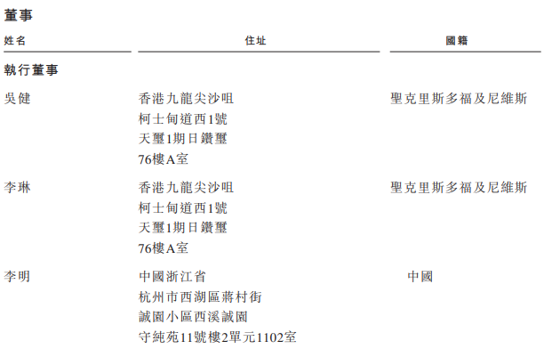 招股书显示,江南布衣的创始人吴健和李琳夫妇住址显示为香港九龙尖沙咀柯士甸道西1号天重1期日钻重76楼A室,国籍为北美岛国圣基茨和尼维斯(英联邦国家,1983年10月与台湾当局“建交”)。