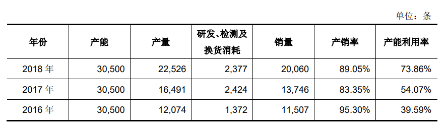 查阅了心脉医疗的招股书,心脉医疗在2019年时合计产能3.05万条,2018年产能利用率达到73.86%,势头不错。