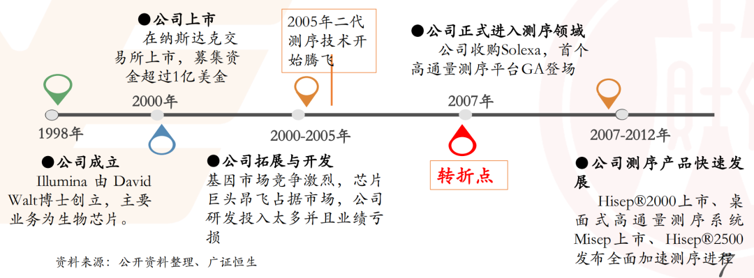 回顾illumina的发家史,最重要的操作莫过于2007年收购了Solexa,在基因测序行业爆发趋势下通过Solexa远超同行的技术和illumina自身的强销售网络迅速崛起。