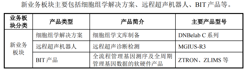 另一方面,以多组学解决方案作为顶层生命科技核心工具开拓新发展方向,布局了细胞组学解决方案、远程超声机器人、BIT产品等新业务板块,为行业下游客户提供了更为多元化的产品及服务。
