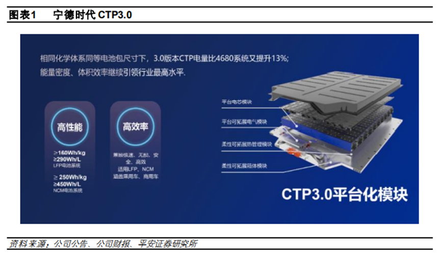 CTP1.0是于2019年推出,其本质是去掉模组的侧板,续航500km+,系统能量密度180Wh/kg+,代表车型是北汽EU5和蔚来系列100kWh包。