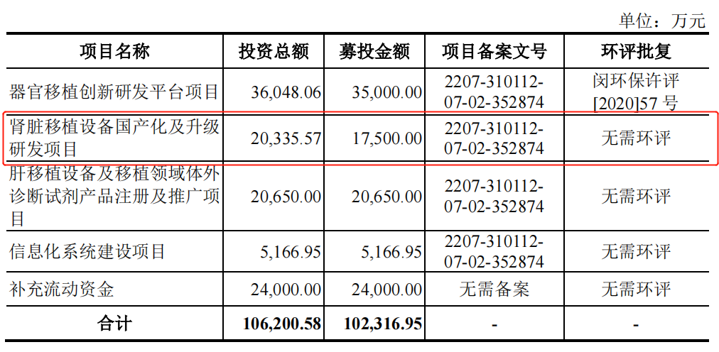 聪明的市场投资者看到这里不难猜出公司未来的规划,拟募资的10.23亿资金中的1.75亿就是用于肾脏移植设备的国产化。