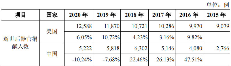 2015-2019年,中国的器官捐献量和移植手术量复合年均增长率分别为20.43%和19.53%,尽管行业增速较高,但受到疫情、政策等不确定性因素影响,渗透率提升进程可能较慢。(国内器官移植的供需比约为1:30。)