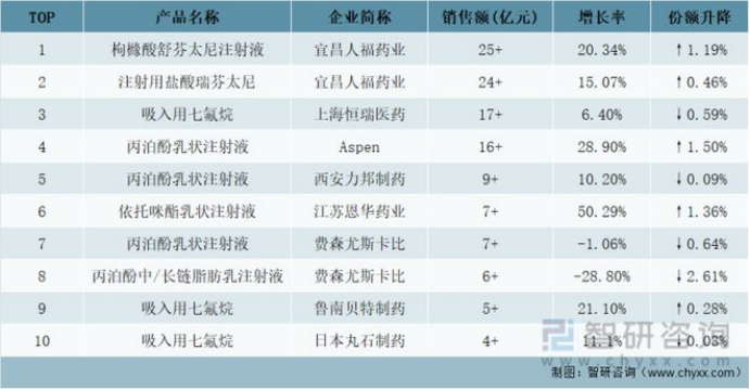 2021年全身麻醉剂TOP10品牌