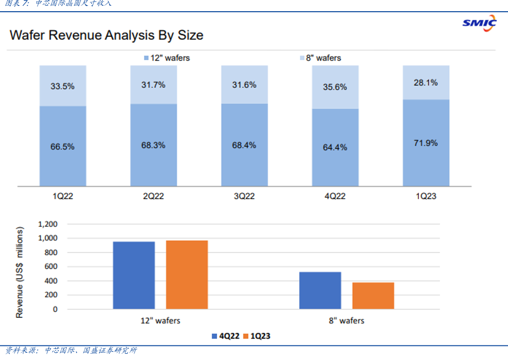 在一季报里,公司收入的细分明细就有所调整,不再以工艺来划分部分收入,而是以12英寸晶圆、8英寸晶圆收入的方式来介绍,二者分别占营收71.9%和28.1%。