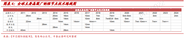 2009、2011、 2015 年公司分别实现65/55、45/40、28nm 的量产,工艺节点不断进步。